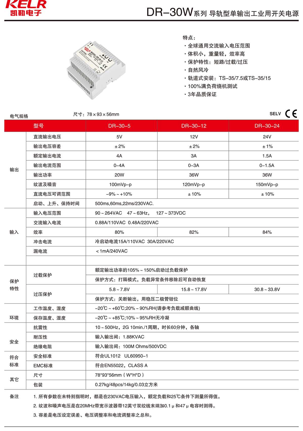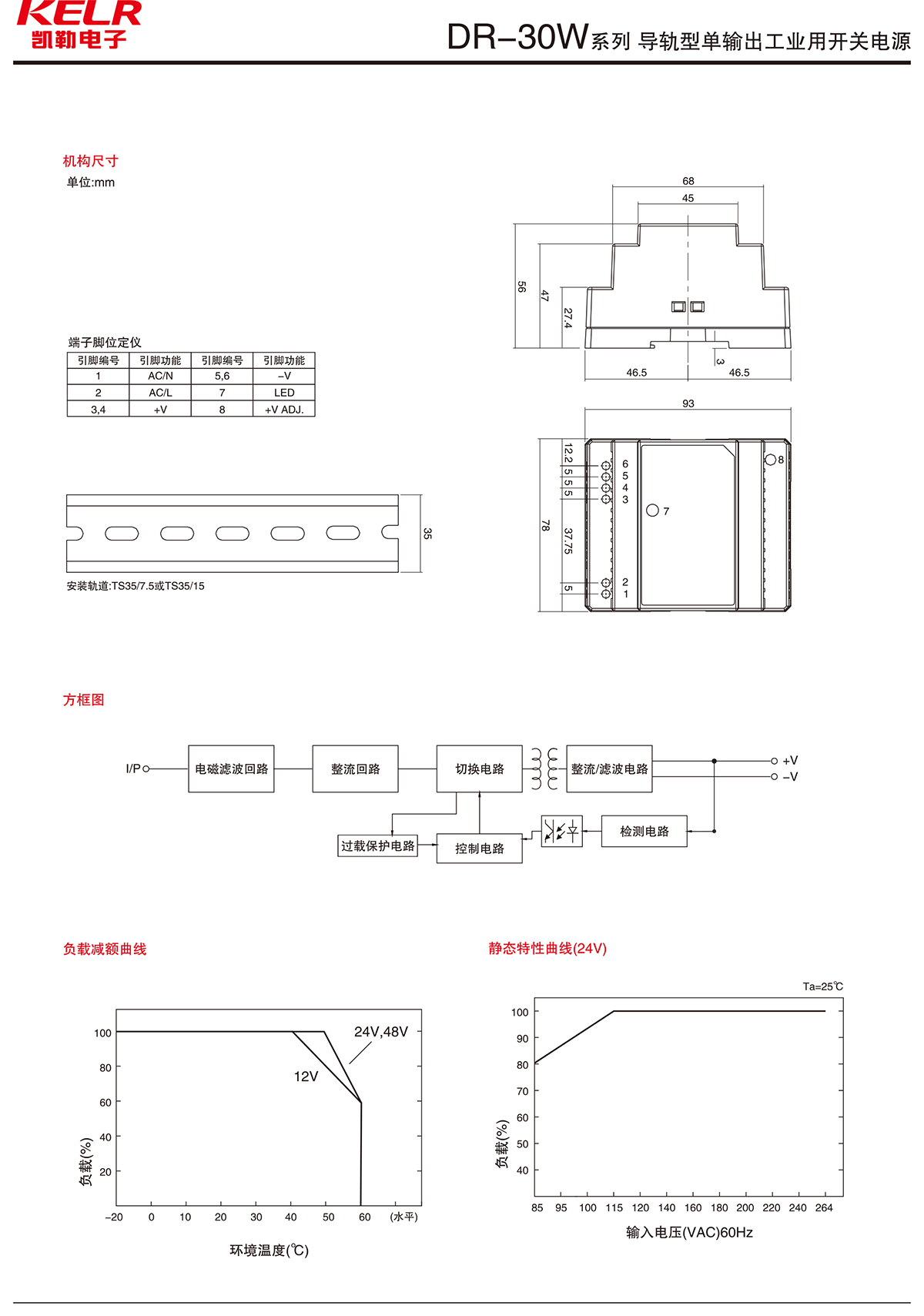 DR-30W 系列 導軌型單輸出工業用開關電源