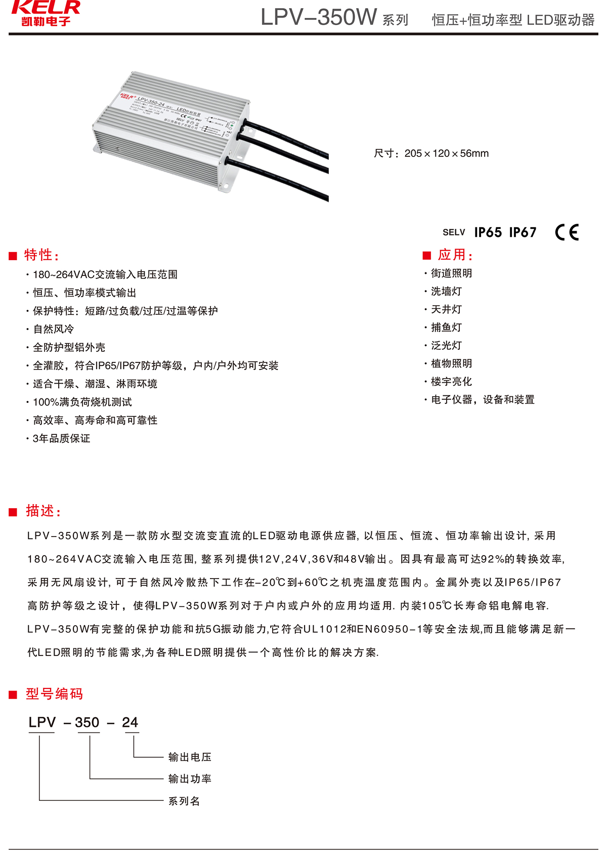 LPV-350-24 系列 恒壓+恒功率型LED驅(qū)動(dòng)器