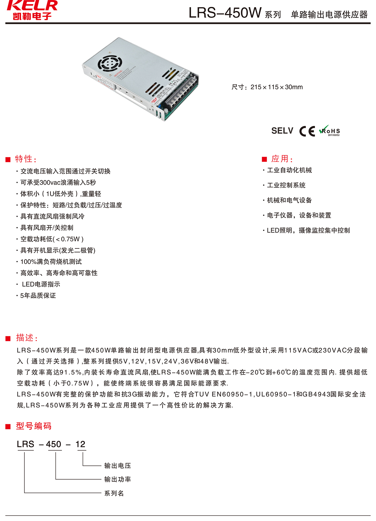 LRS-450-12 系列 單路輸出電源供應器