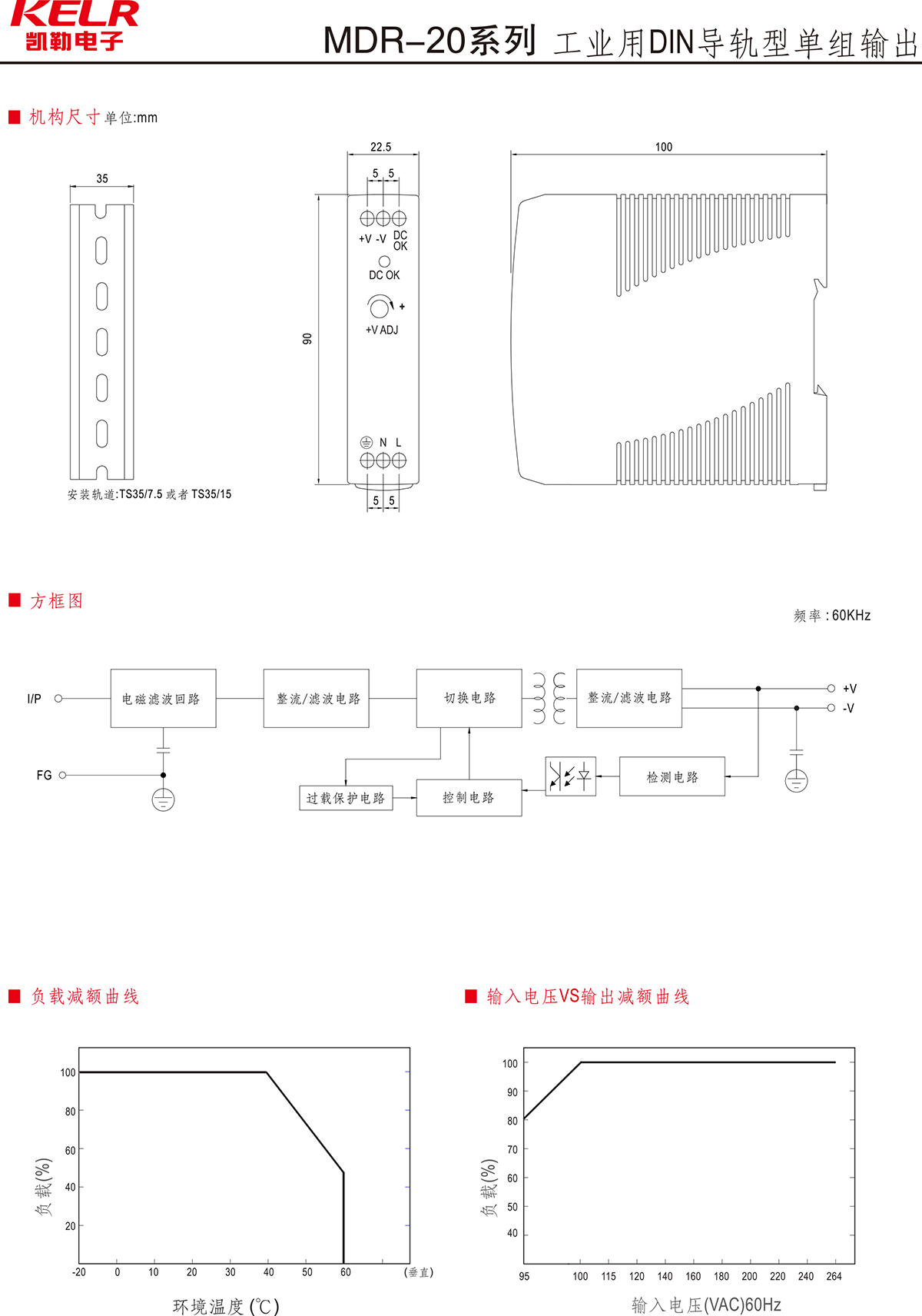 MDR-20W 系列 工業用DIN導軌型單組輸出