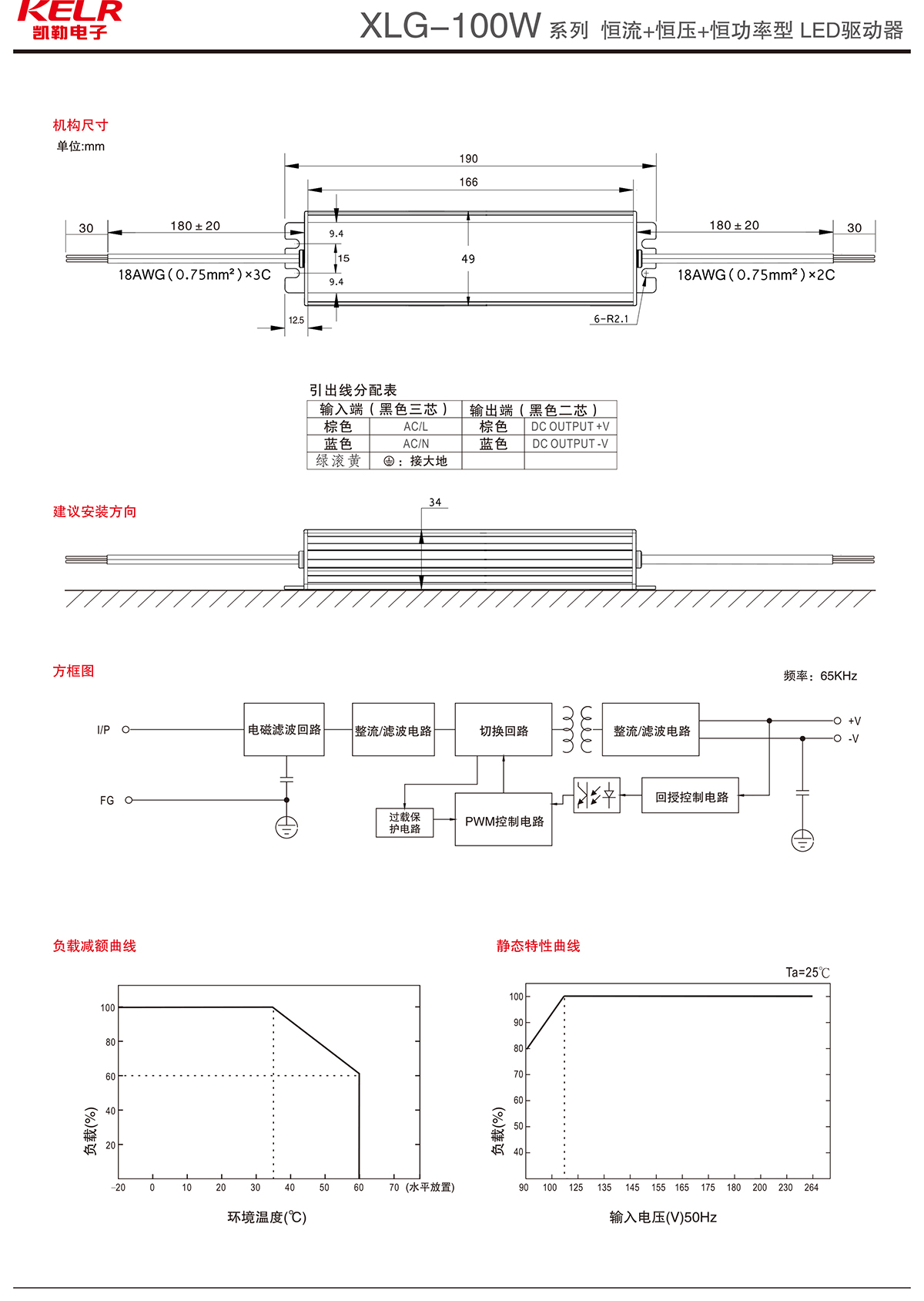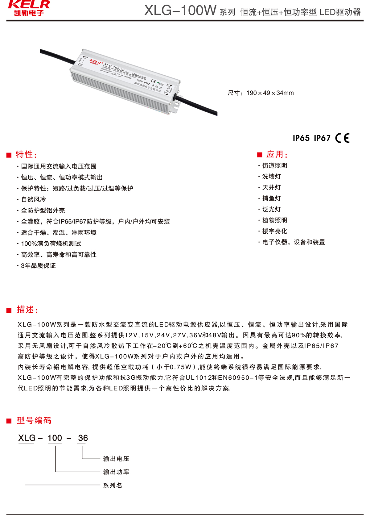 XLG-100-12 系列 恒壓+恒功率型LED驅動器