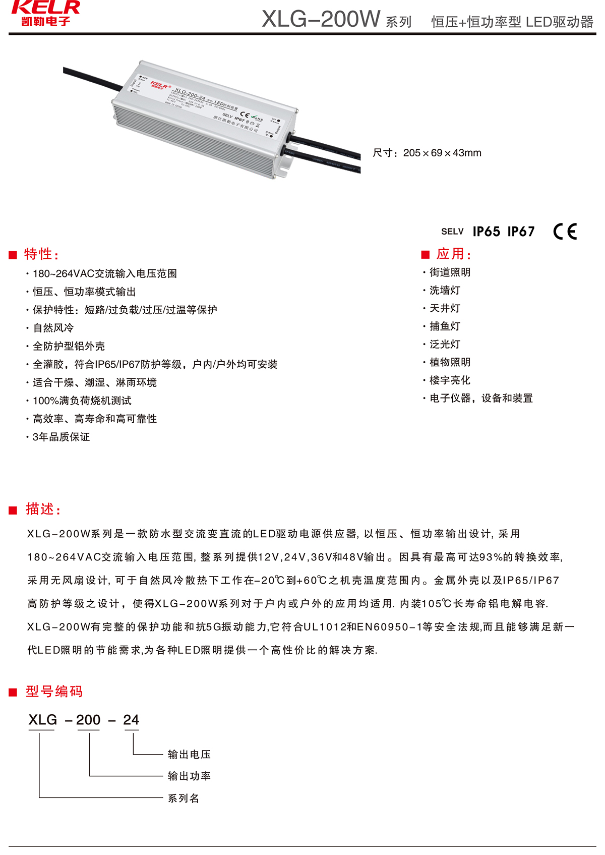 XLG-200-24 系列 恒壓+恒功率型LED驅動器