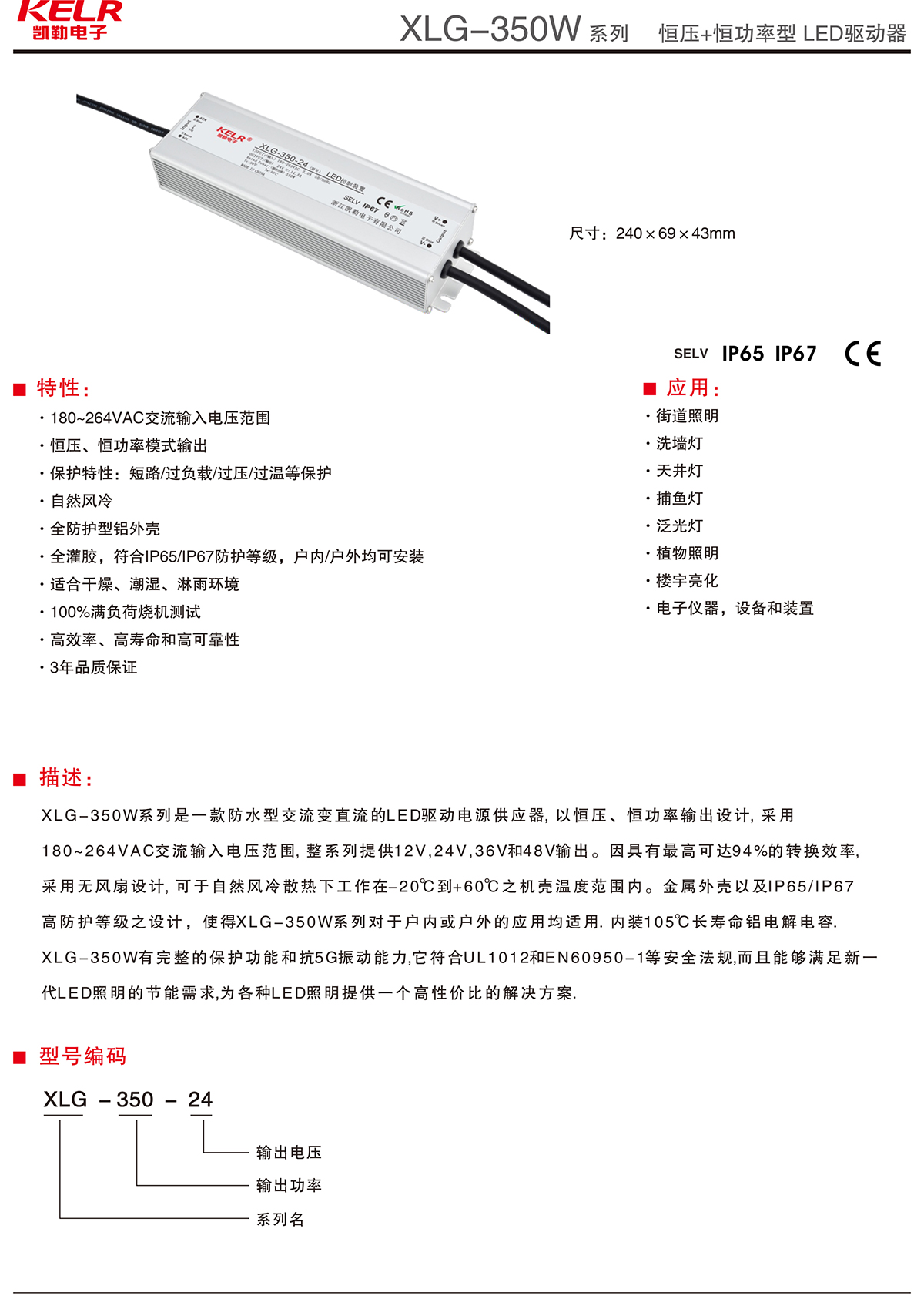 XLG-350-24 系列 恒壓+恒功率型LED驅動器