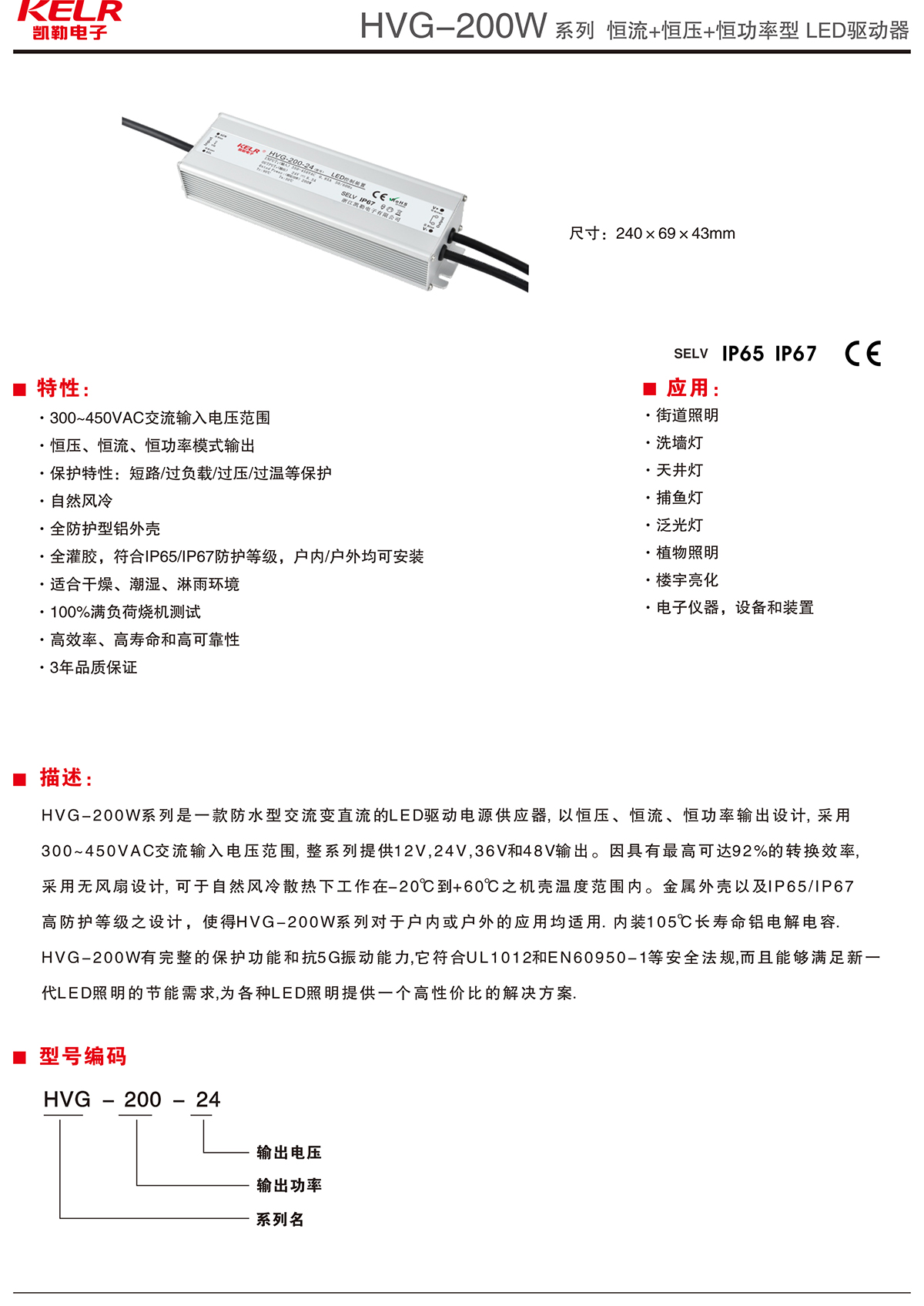 HVG-200-24 系列 恒流+恒壓+恒功率型LED驅動器