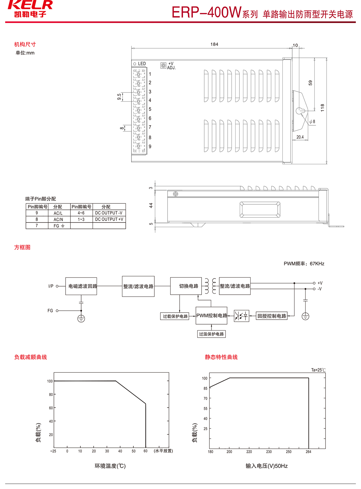 ERP-400-24 系列 單路輸出防雨型開關(guān)電源