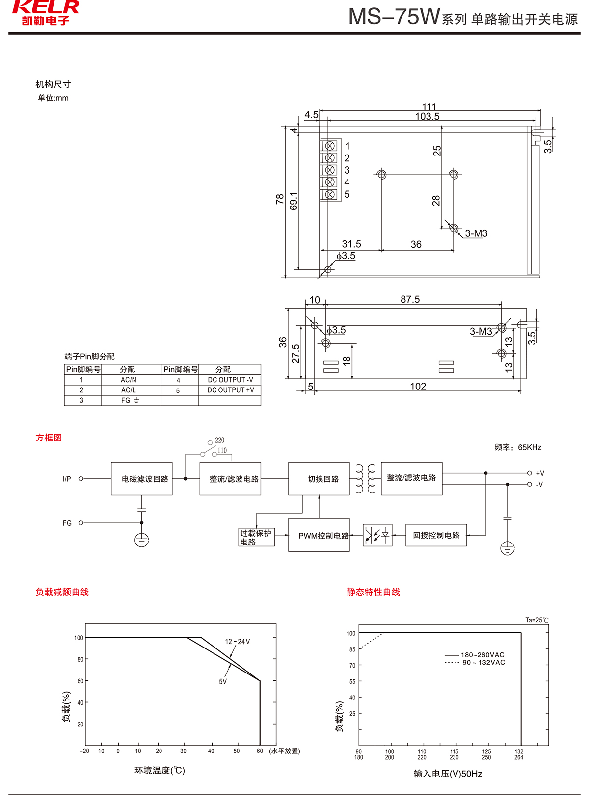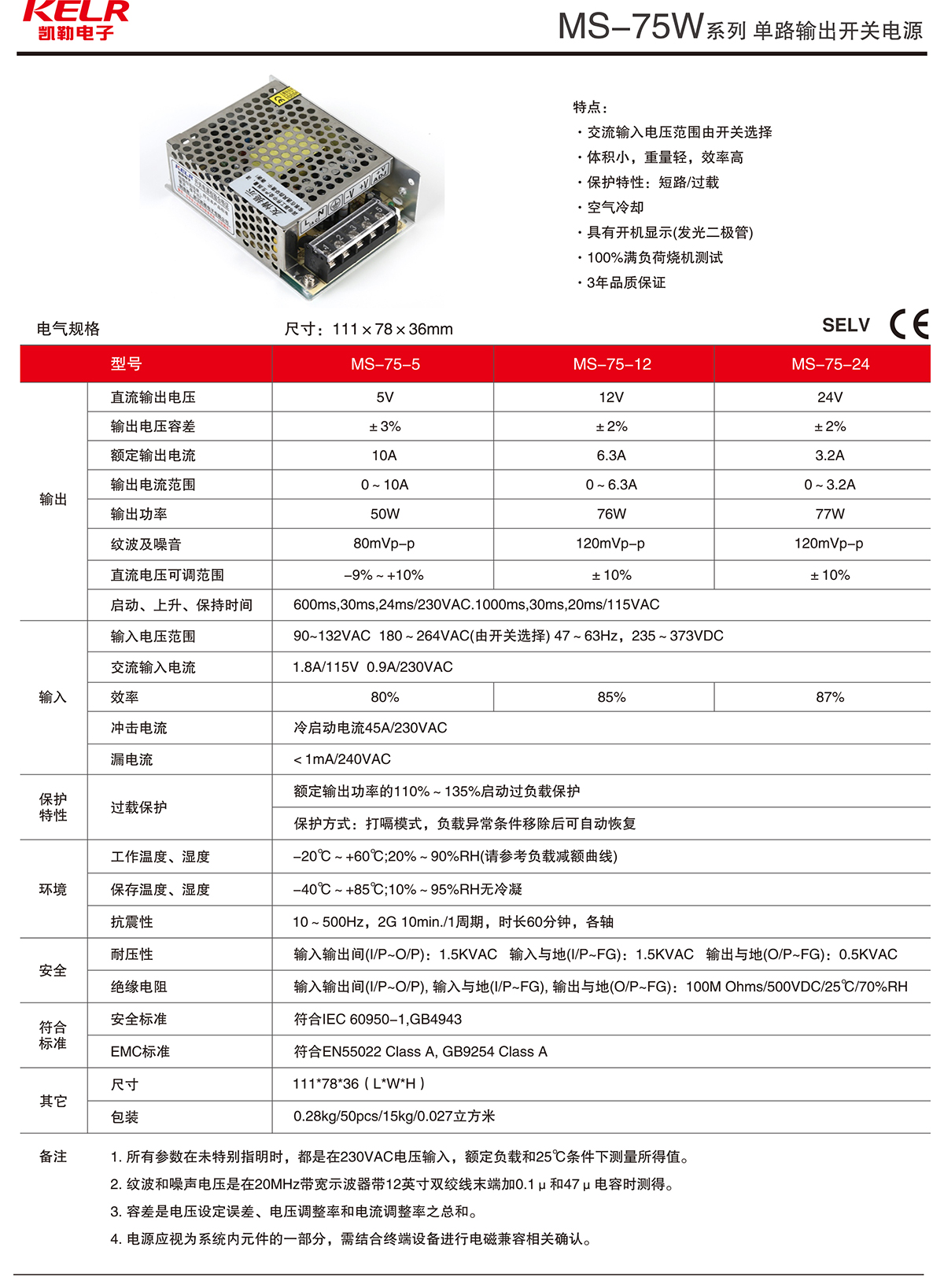 MS-75W 系列 單路輸出開關電源