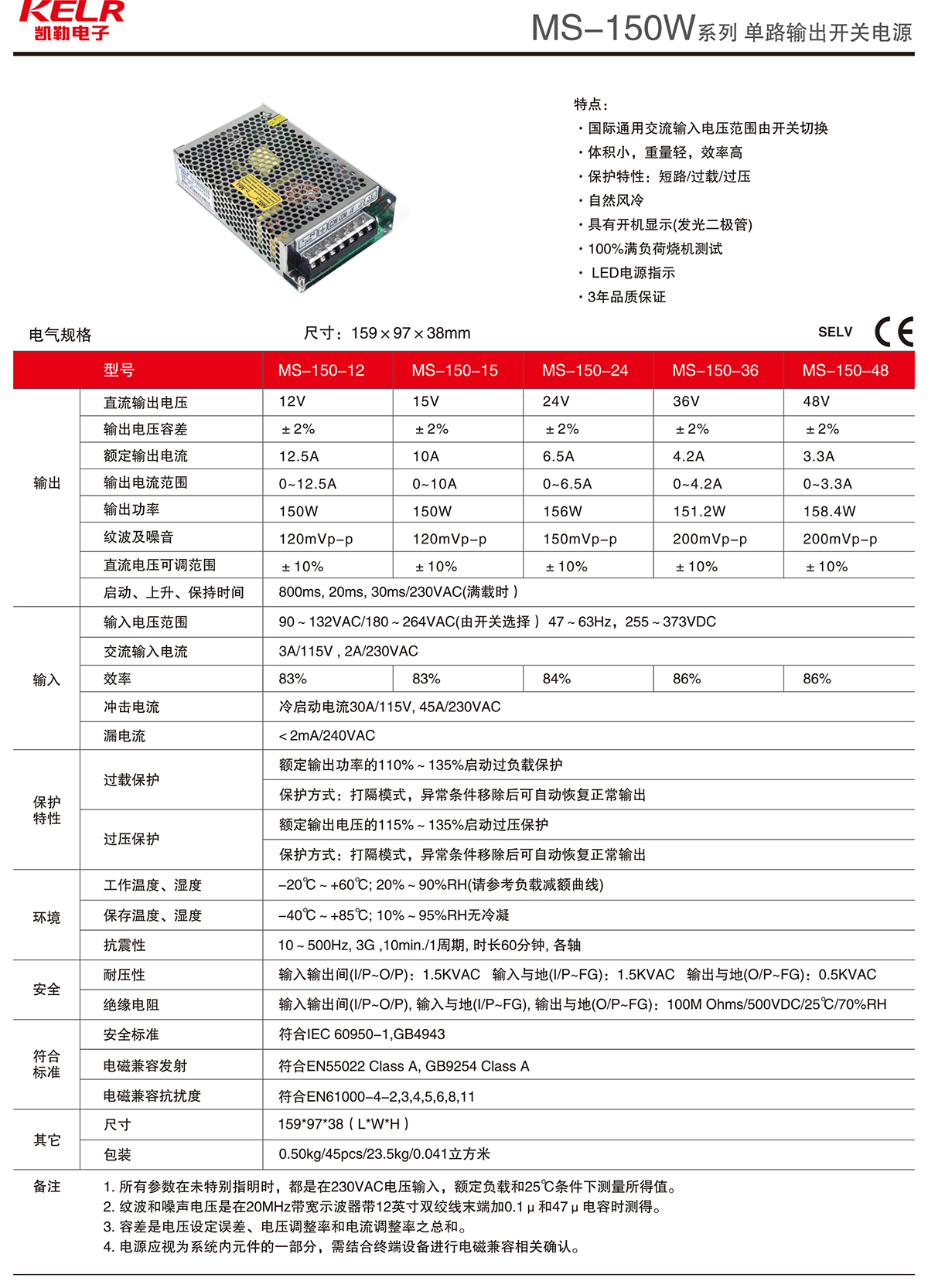MS-150W 系列 單路輸出開關電源