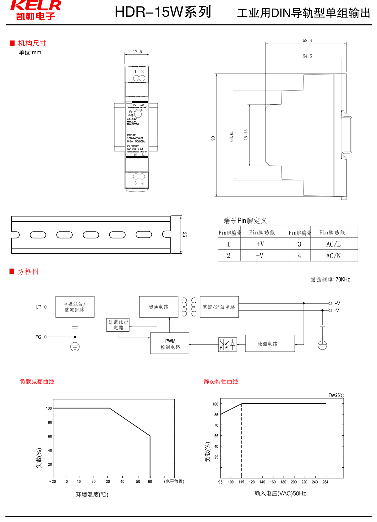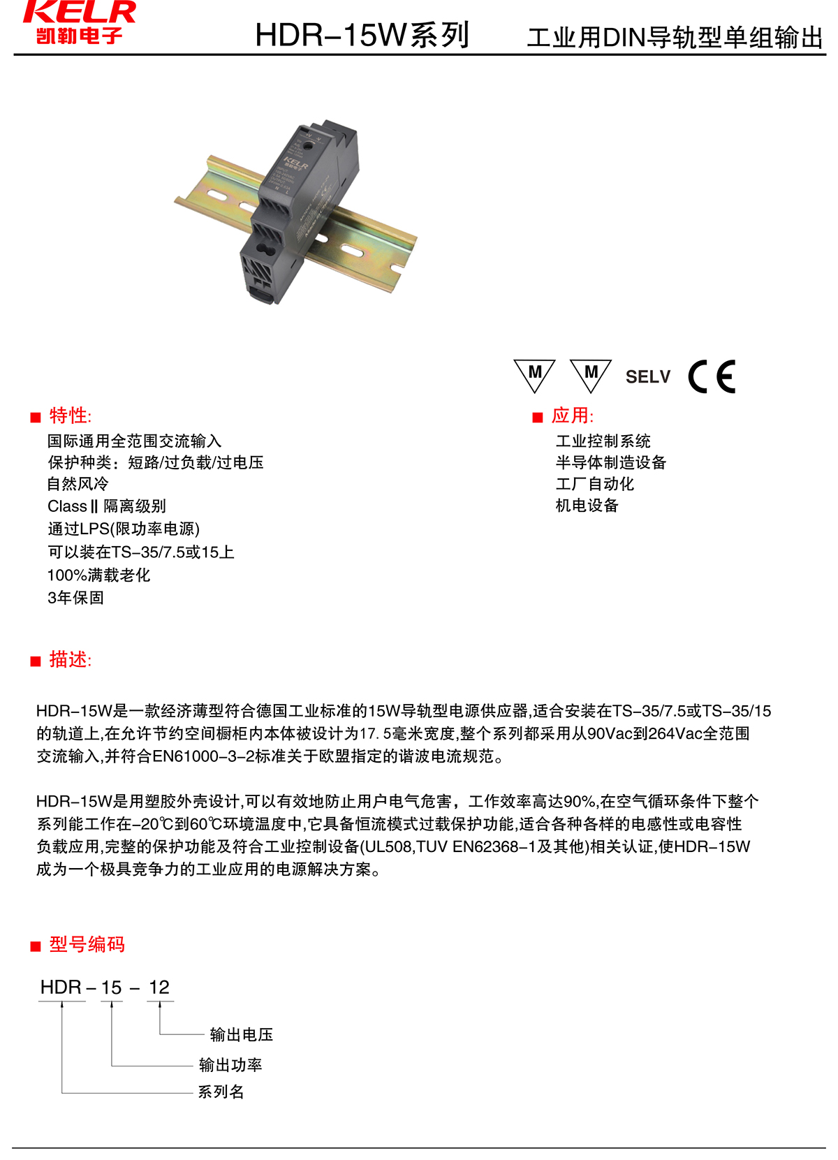 HDR-15W 工業(yè)用DIN導(dǎo)軌型單組輸出