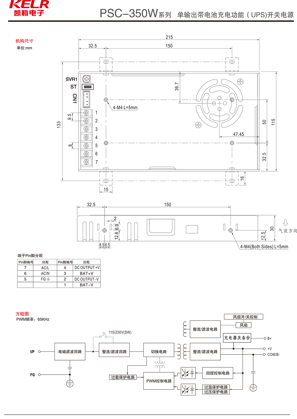PSC-350W 系列 單輸出帶電池充電功能(UPS)開關(guān)電源